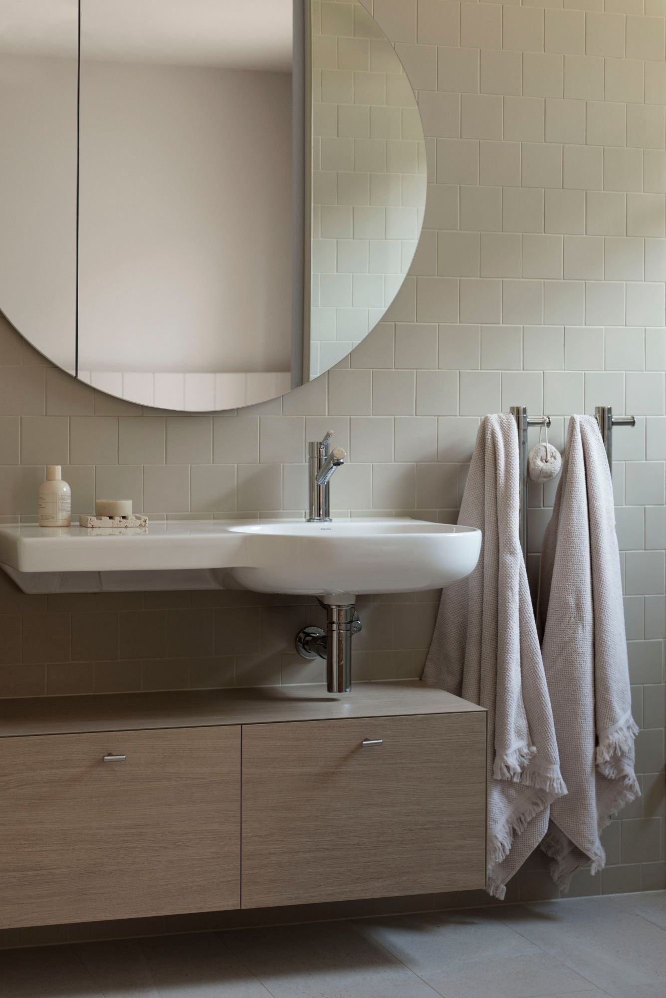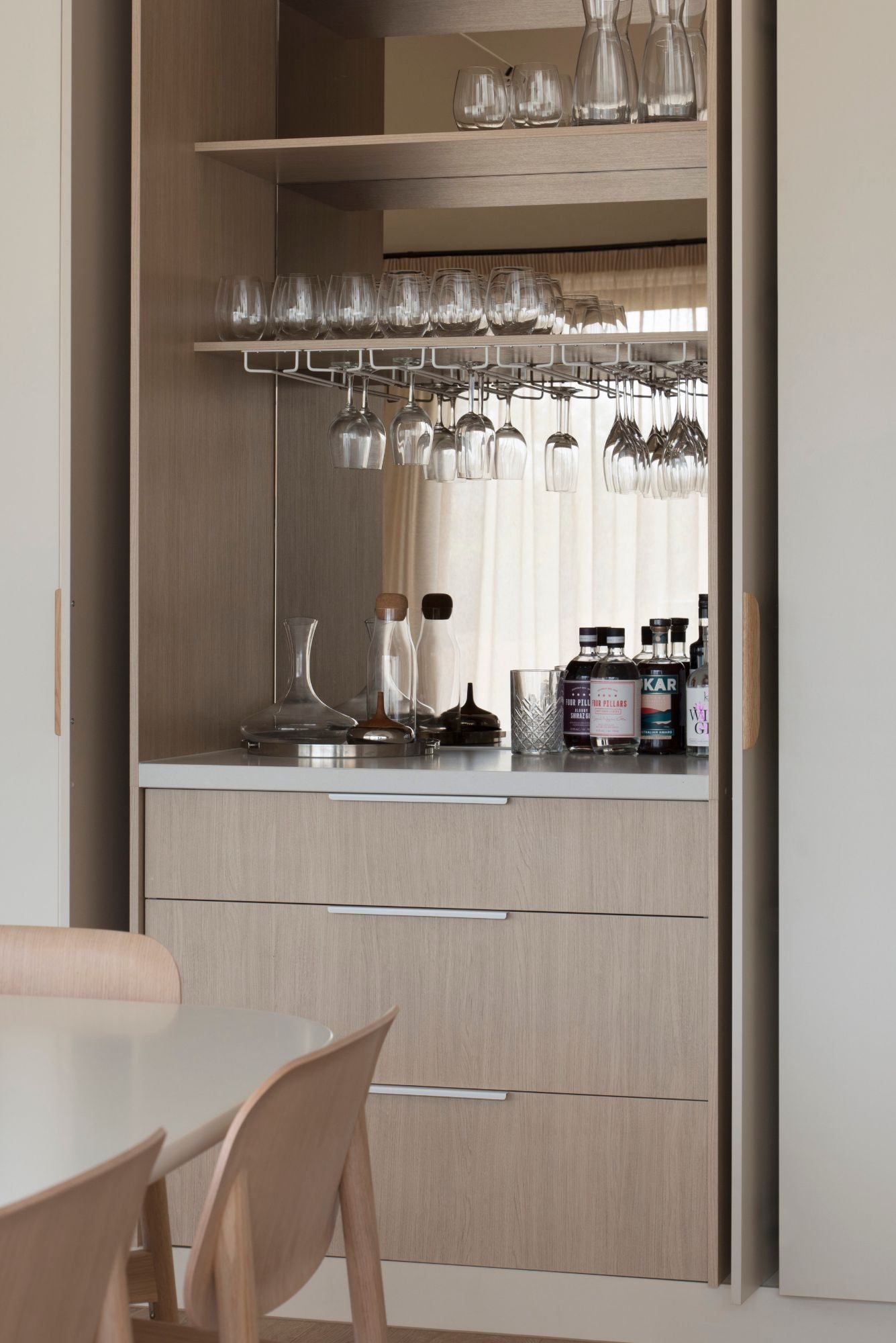 Castella’s Ledge, Strand, and Lenah handles are used across the joinery, offering clean, sculptural touches that meld seamlessly with the home’s refined and relaxed aesthetic. Each handle contributes quietly to the feeling of cohesion, forming part of the subtle language of material and detail that defines this retreat-like residence.
