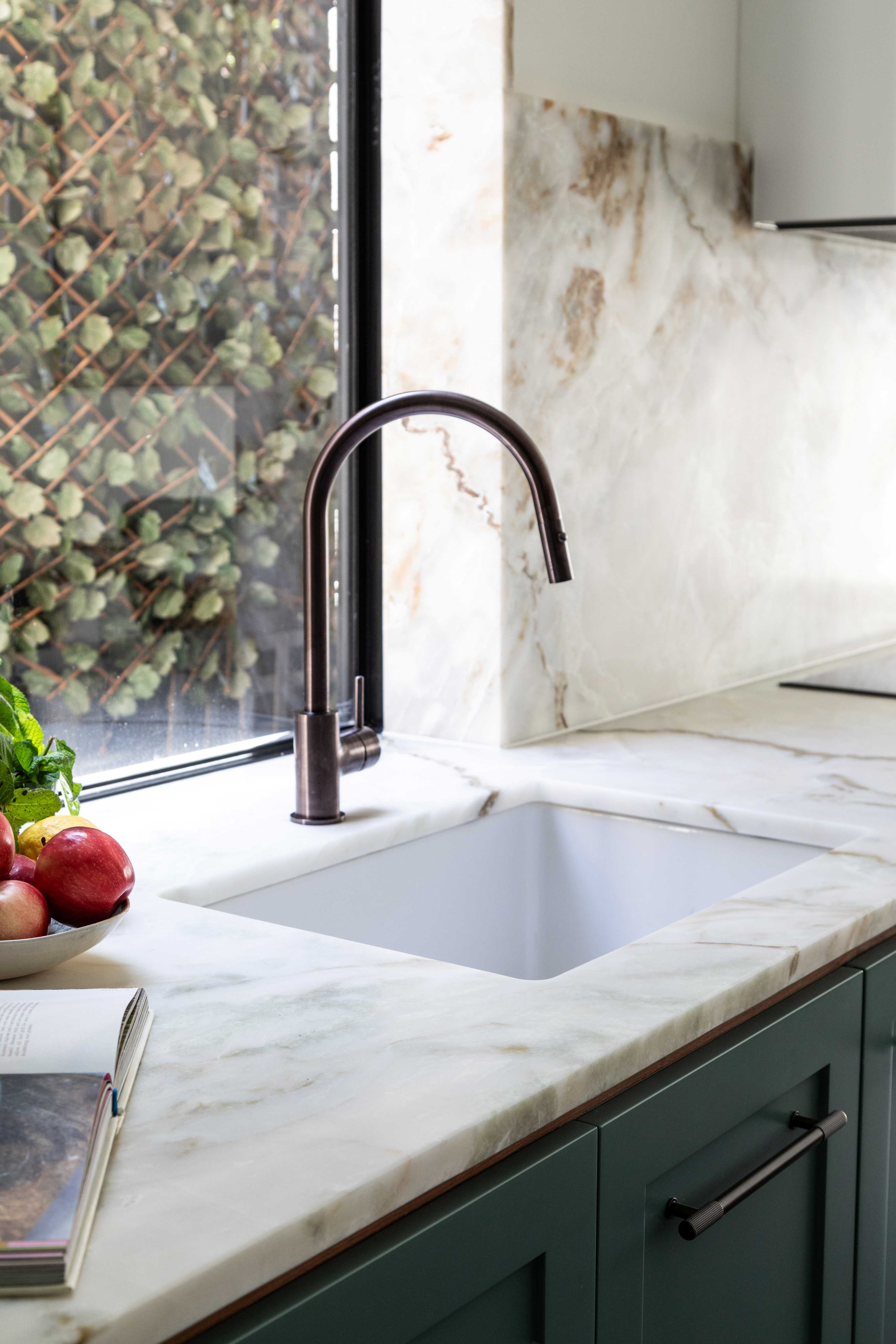 Set within a narrow South Melbourne terrace, photographed by Suzi Appel, this kitchen renovation by Kaas Interiors expertly balances heritage elegance with contemporary calm.