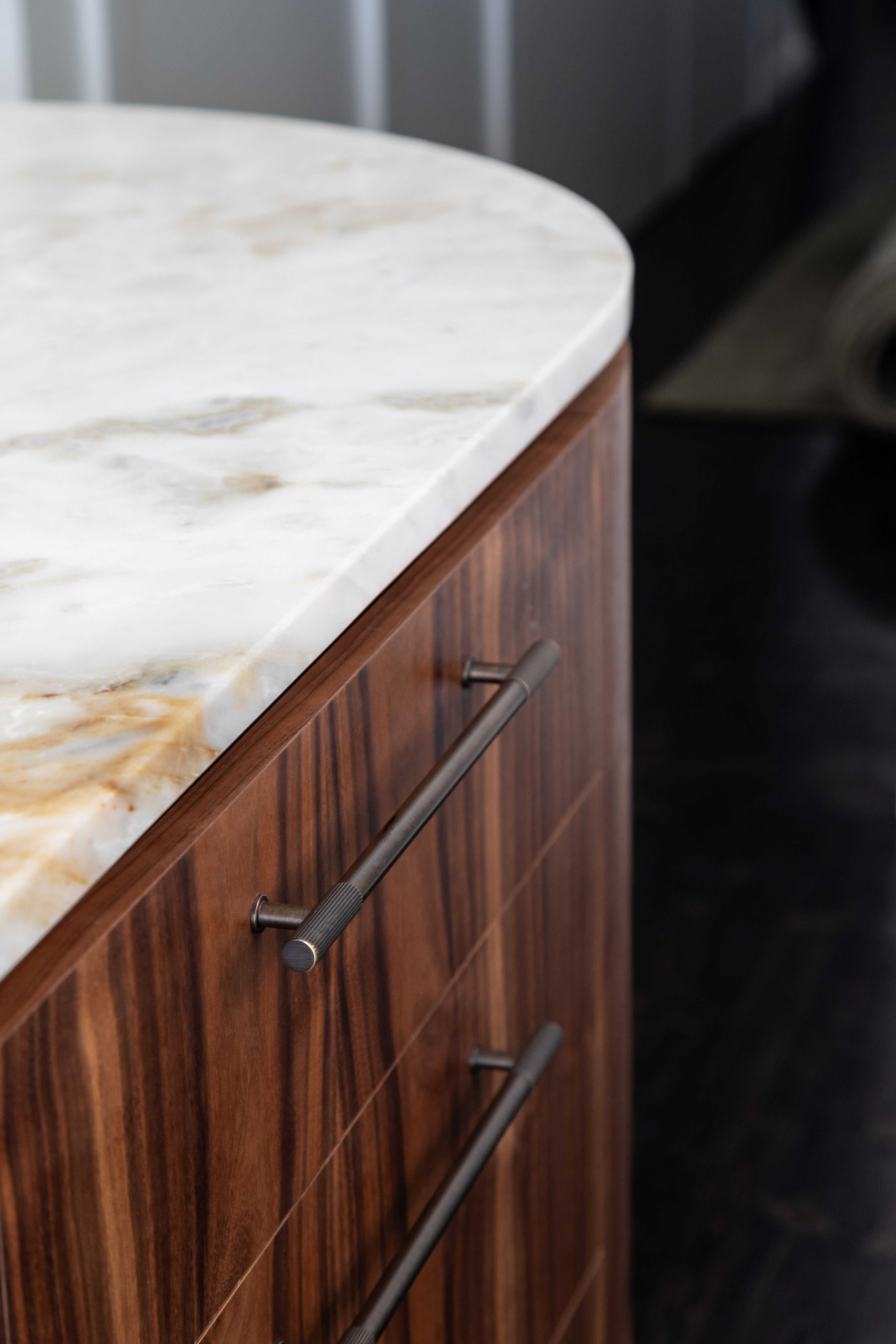 Castella’s Ridge handle in a warm bronze finish was chosen for its tactile presence and transitional appeal, subtly tying together traditional detailing and modern restraint. With natural stone surfaces, soft timber tones, and clever storage including a compact butler’s pantry, this kitchen exemplifies quiet confidence—proving that every detail, no matter how small, plays a role in elevating the heart of the home.